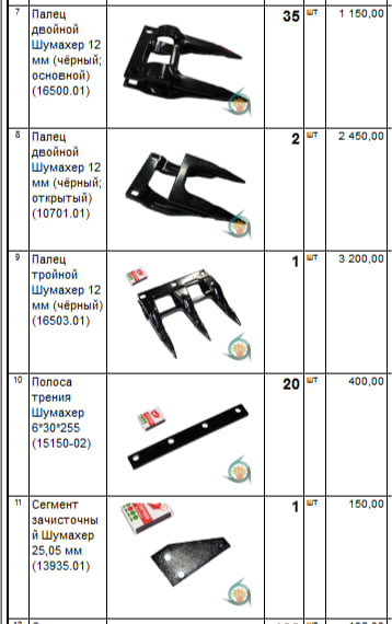 На нашем обучении большой раздел посвящен товарной группе Шумахер, где мы учим подбирать комплектующие на любую жатку.